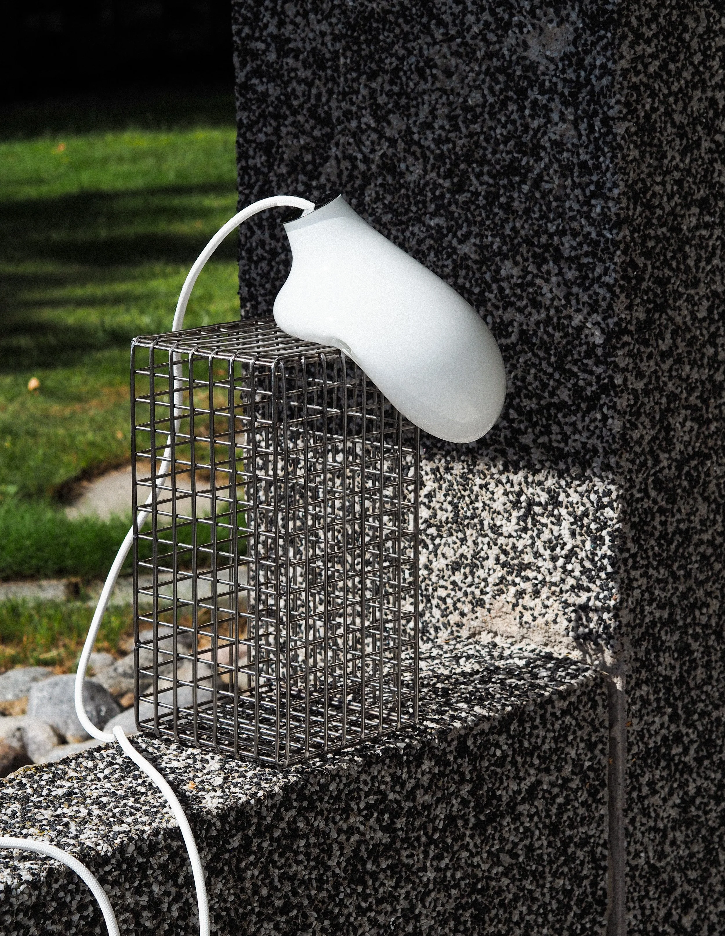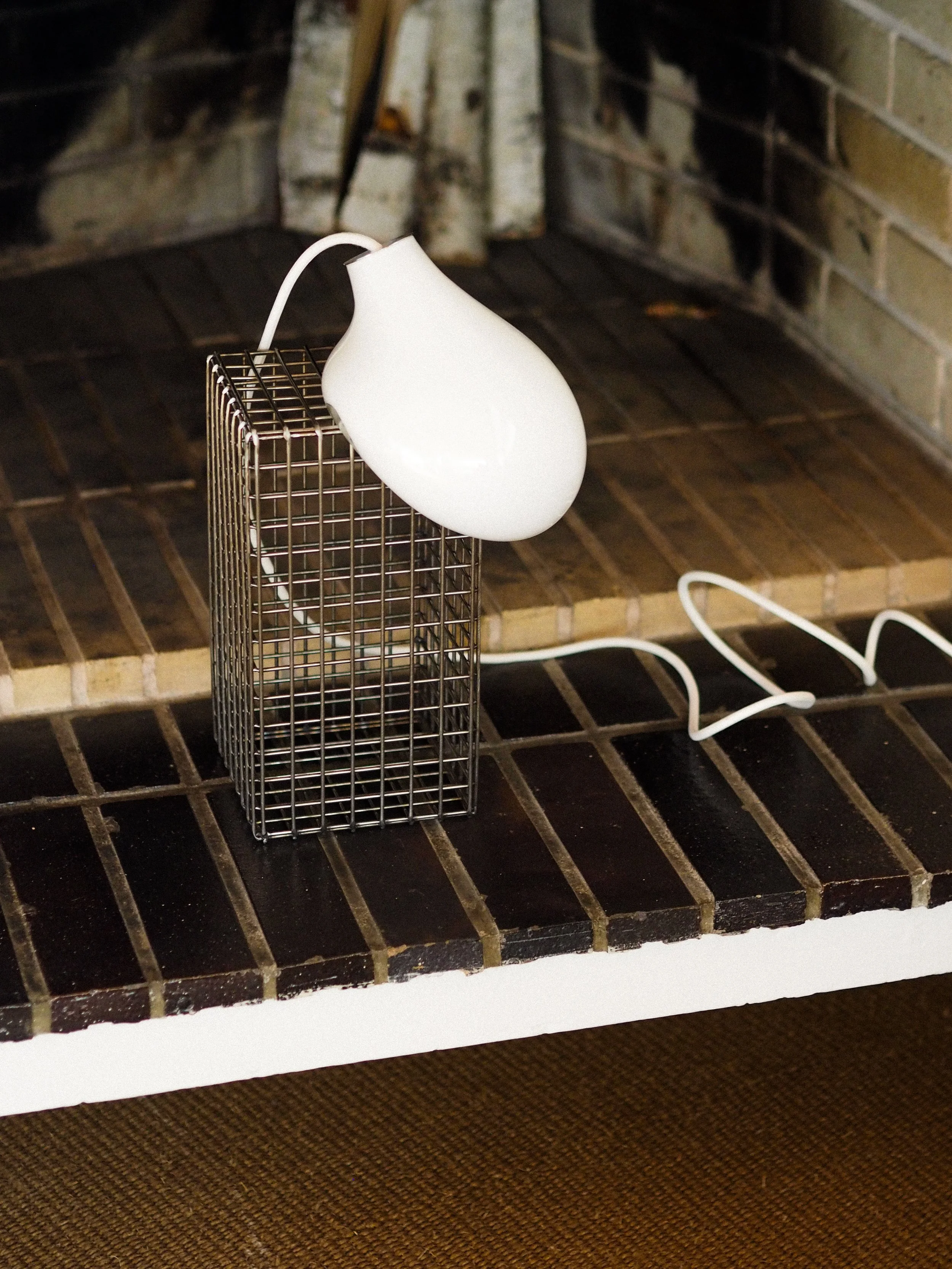 The PP001 Light Series is a union of steel mesh or wood and glass, where the glass has been allowed to hold its own against other materials.
